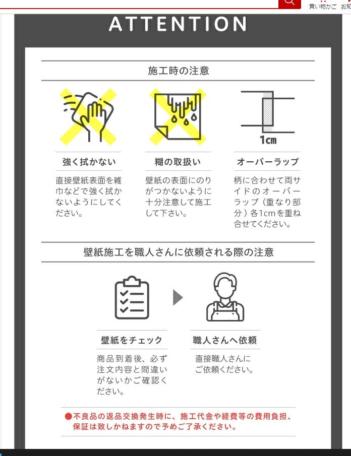 <施工>こちらの商品は、のりはついておりません。お客様自身でのりを付けて施工していただきます。